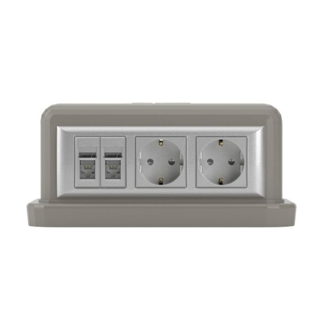 Модель предназначена для скрытого монтажа под столами, трибунами или в интерьерах с открытой планировкой. Она позволяет организовать аккуратное подключение электрооборудования с двух сторон, поддерживая порядок и безопасность. Башенка совместима с электроустановочными изделиями популярных серий DKC: "Avanti", "Viva" и "45х45 мм".