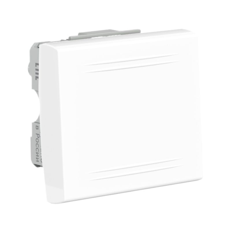 Ключевые преимущества выключателя включают высокий механический ресурс — не менее 100 000 циклов переключений, что гарантирует долговечность. Корпус из термопласта белого цвета не содержит галогенов, обеспечивая экологическую безопасность. Компактные размеры (50x45x34.4 мм) и ширина в 2 модульных расстояния позволяют легко вписать его в стандартные монтажные коробки и рамки.