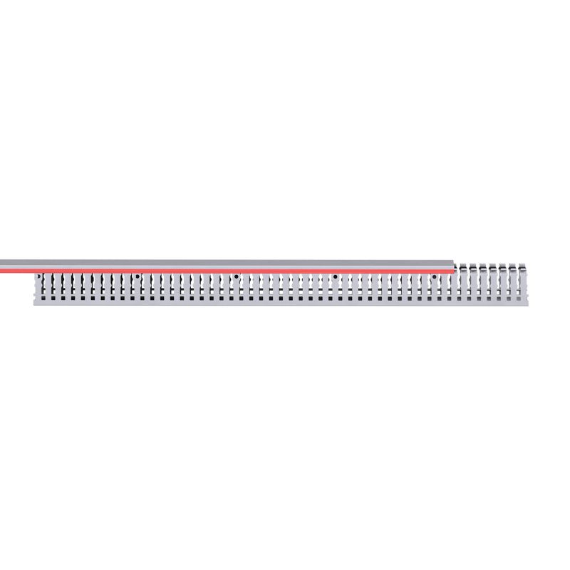 Серый цвет короба гармонично вписывается в интерьер технических помещений. Компактные габариты 40x40 мм идеально подходят для организации групповой прокладки проводов среднего сечения, помогая создать безупречно чистое и функциональное монтажное пространство.