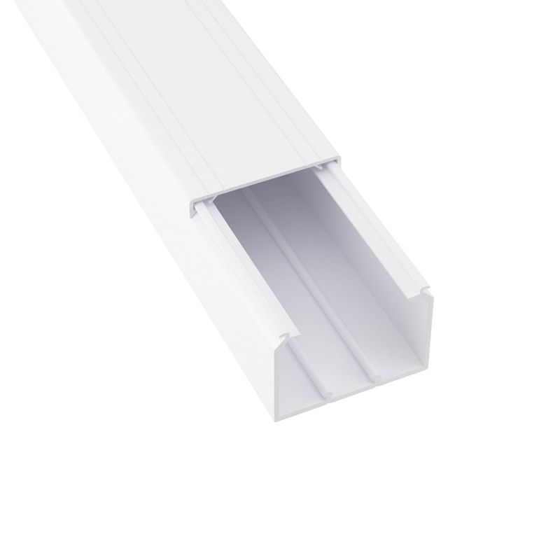 Кабель-канал изготовлен из ударопрочного ПВХ, устойчивого к воздействию окружающей среды в диапазоне от -25°C до +60°C. Монтаж упрощен благодаря перфорации в основании для крепления и защитной пленке. Двухметровая длина, симметричная конструкция и система крепления крышки методом вставки внутрь обеспечивают быструю и удобную установку.