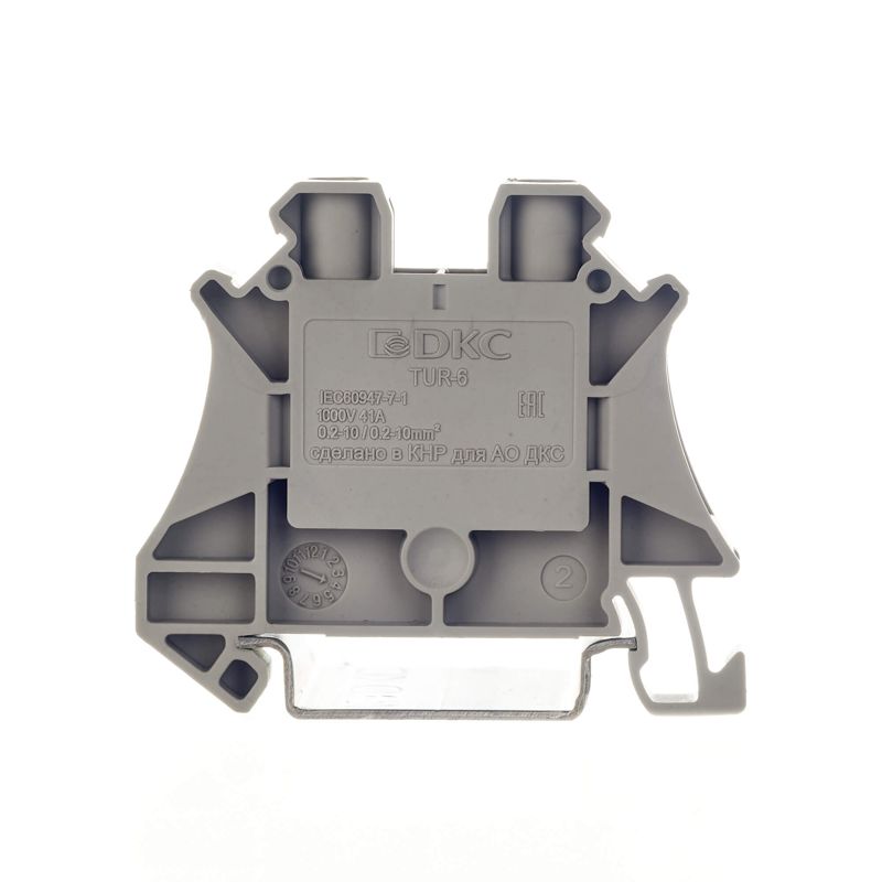 Клемма DKC TUR-6 рассчитана на номинальный ток 41 А и напряжение до 1000 В, поддерживая как однопроволочные, так и многопроволочные гибкие проводники. Серый цвет корпуса соответствует общепринятой маркировке, а боковое расположение присоединений облегчает монтаж и обслуживание.