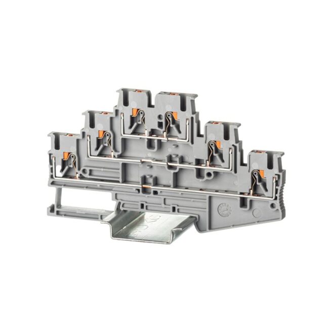Клемма идеально подходит для сборки распределительных щитов, автоматики и систем управления, где требуется организованное и многоканальное соединение проводов. Благодаря трем независимым уровням и верхнему расположению зажимов, она упрощает разводку и обслуживание цепей, а монтаж на стандартную DIN-рейку 35 мм (OMEGA-тип) делает интеграцию быстрой и удобной.