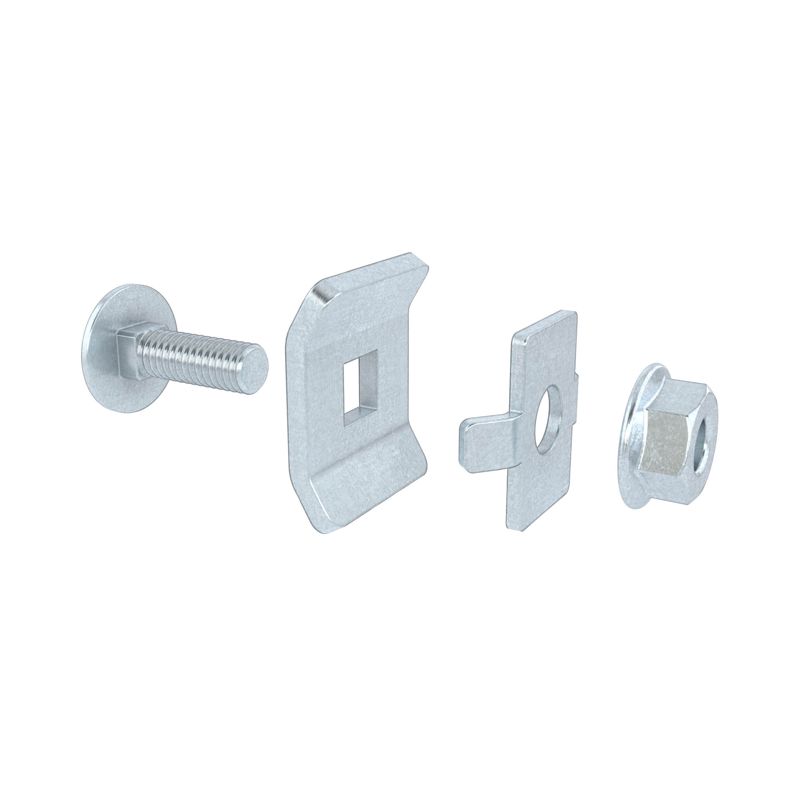 Главным преимуществом набора является четырехлепестковая шайба, которая создает увеличенную площадь контакта и гарантирует исключительно надежную фиксацию. Все элементы изготовлены из качественной стали, что обеспечивает сохранение расчетной несущей способности и механической целостности всей кабельной конструкции.