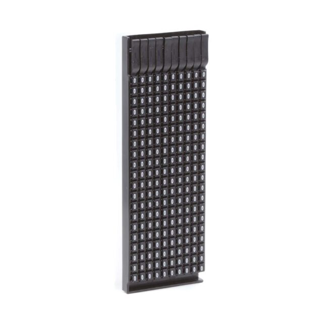 Маркер изготовлен из долговечного полиамида 6.6, устойчивого к температурам от –40 до +100 °С. Боковые штифты обеспечивают надежную фиксацию и идеальное выравнивание на проводе. Четкая белая цифра "0" на черном фоне соответствует международной цветовой кодировке, обеспечивая мгновенное визуальное распознавание.