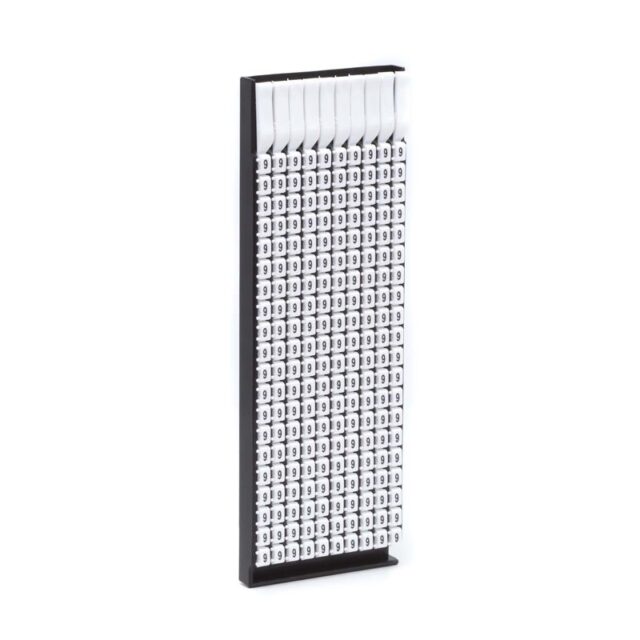 Маркер изготовлен из долговечного полиамида 6.6, устойчивого к широкому диапазону температур от –40 до +100 °С. Конструкция с боковыми штифтами обеспечивает надежную фиксацию и идеальное выравнивание на проводе. Классическая белая основа с черной цифрой соответствует международным стандартам цветовой кодировки для быстрого распознавания.