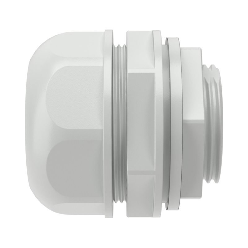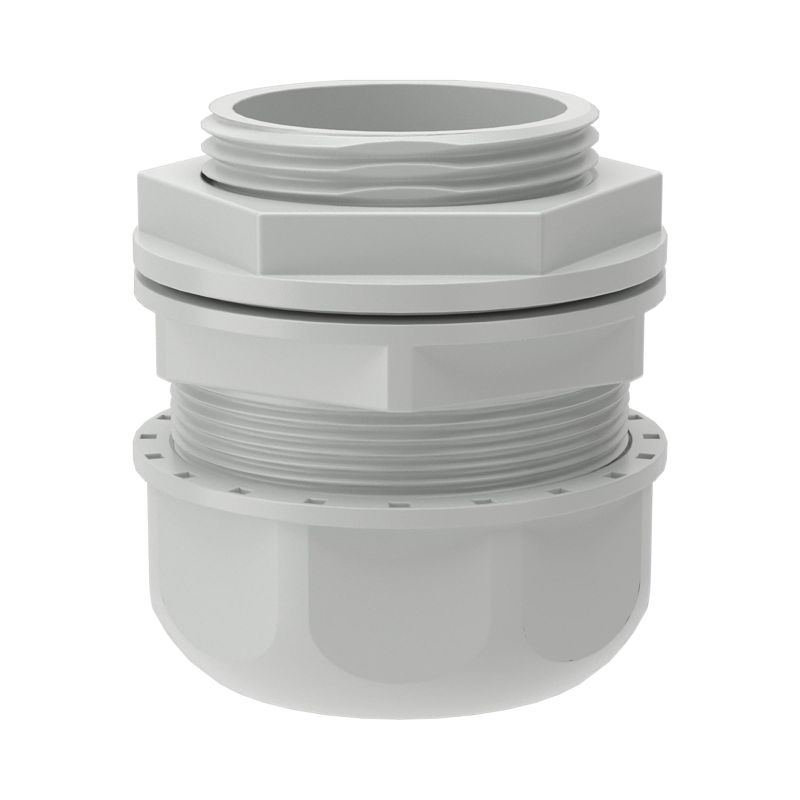 Изделие выполнено из прочного полипропилена серого цвета (RAL 7035) и имеет степень защиты IP65, что обеспечивает полную защиту от струй воды и пыли. Прямолинейное исполнение с наружной резьбой (1 1/4 дюйма) обеспечивает удобный и быстрый монтаж. Широкий температурный диапазон эксплуатации от –25°С до +60 °С делает его пригодным для использования в большинстве климатических зон.