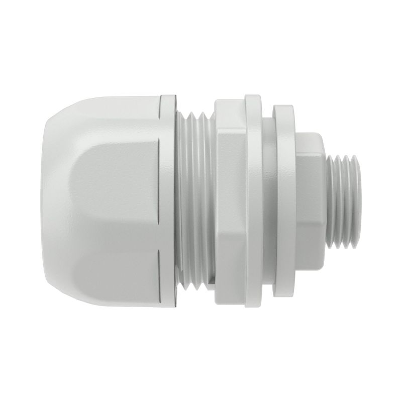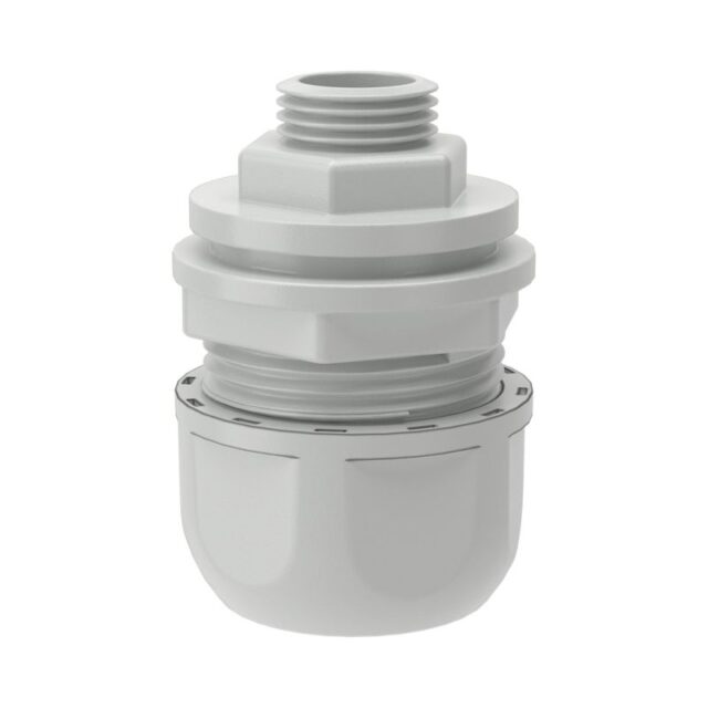 Переходник изготовлен из прочного полипропилена и оснащен уплотнительным кольцом, что гарантирует степень защиты IP65 — полную защиту от пыли и струй воды. Серый цвет (RAL 7035) является нейтральным и универсальным. Широкий температурный диапазон эксплуатации от -25°C до +60°C позволяет использовать его в большинстве климатических зон.