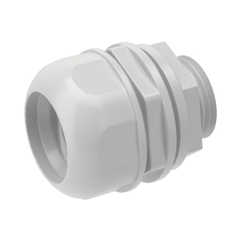 Ключевые преимущества переходника включают корпус из прочного полипропилена серого цвета (RAL 7035) и наружную резьбу на 1/2 дюйма для удобного монтажа. Прямолинейное исполнение обеспечивает простоту установки. Широкий температурный диапазон эксплуатации от –25°С до +60 °С делает его пригодным для использования в большинстве климатических зон.