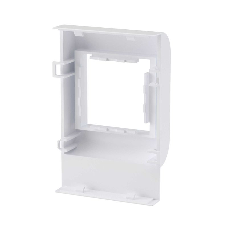 Конструкция из ударопрочного АБС-пластика и поликарбоната гарантирует долговечность. Монтаж осуществляется быстро и без инструментов: суппорт защелкивается внутри короба, а устройства фиксируются в рамке изнутри. Гладкая чисто-белая поверхность (RAL 9016) и встроенная накладка на стык обеспечивают бесшовный, элегантный вид.