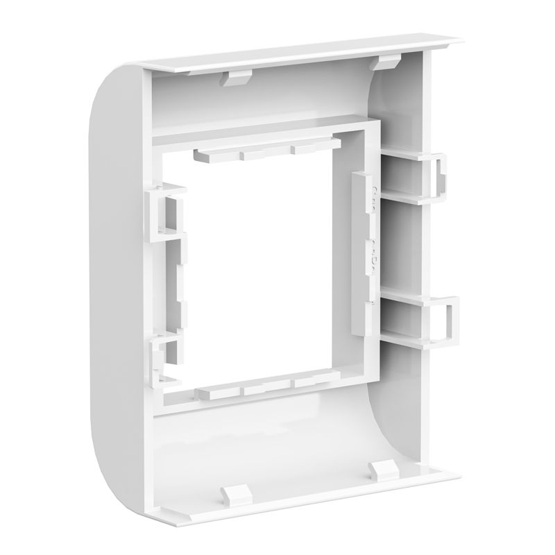 Конструкция из ударопрочного АБС-пластика и поликарбоната гарантирует долговечность. Монтаж осуществляется быстро и без инструментов — суппорт защелкивается в короб, а устройства фиксируются в рамке изнутри. Гладкая поверхность чистого белого цвета (RAL 9016) и встроенная накладка на стык обеспечивают безупречный внешний вид.
