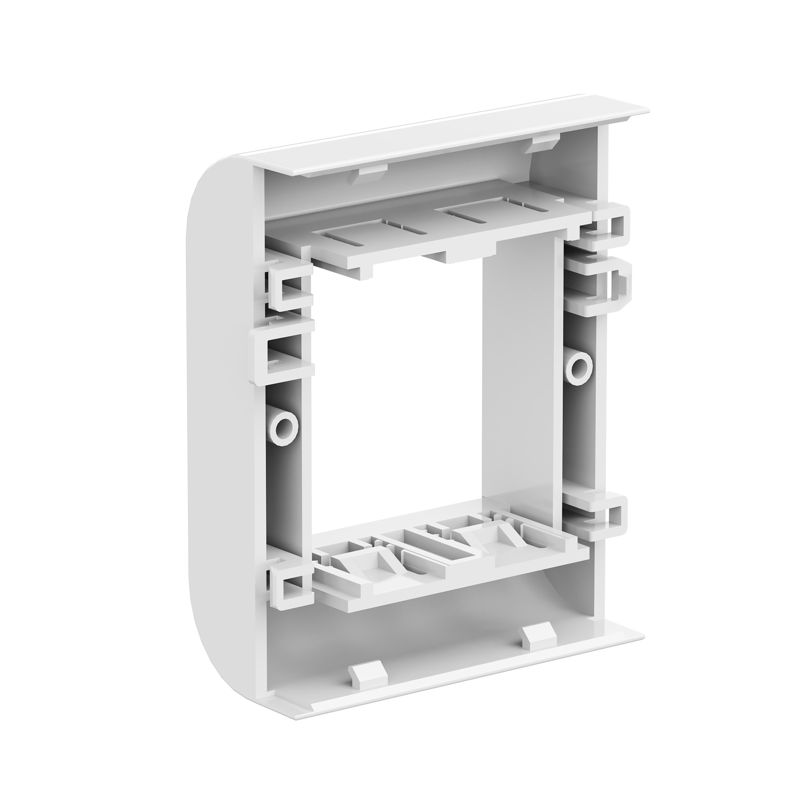 Конструкция из ударопрочного АБС-пластика и поликарбоната гарантирует долговечность и устойчивость к механическим нагрузкам. Монтаж осуществляется максимально просто: суппорт защелкивается внутри короба, а электроустановочные изделия фиксируются в рамке изнутри, что обеспечивает чистую установку без видимых креплений.