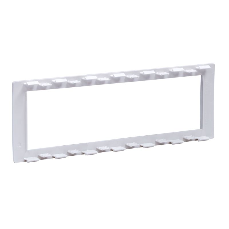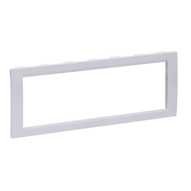 Ключевые преимущества включают универсальность установки на каркасы F0000M, F0000MB, F0000A, F0000L и модульную конструкцию: одна 6-модульная рамка монтируется поверх трёх 2-модульных каркасов. Изготовленная из ударопрочного АБС-пластика чисто-белого цвета, она сохраняет внешний вид на протяжении всего срока службы.