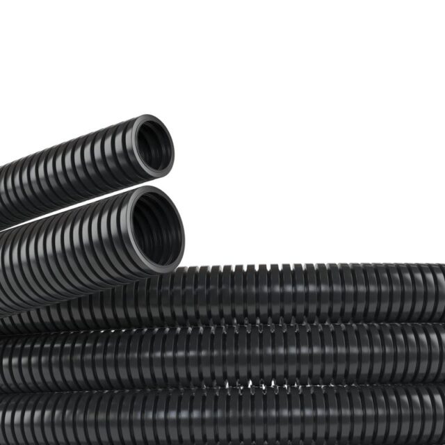 Труба предназначена для открытой прокладки в агрессивных средах, на производственных объектах, в цехах и на складах. Благодаря устойчивости к температурам от -45°C до +150°C и степени защиты IP67, она герметично защищает кабели от пыли и временного погружения в воду. Отсутствие протяжки (зонта) компенсируется наличием продольных прорезей для удобного монтажа уже проложенных кабелей.