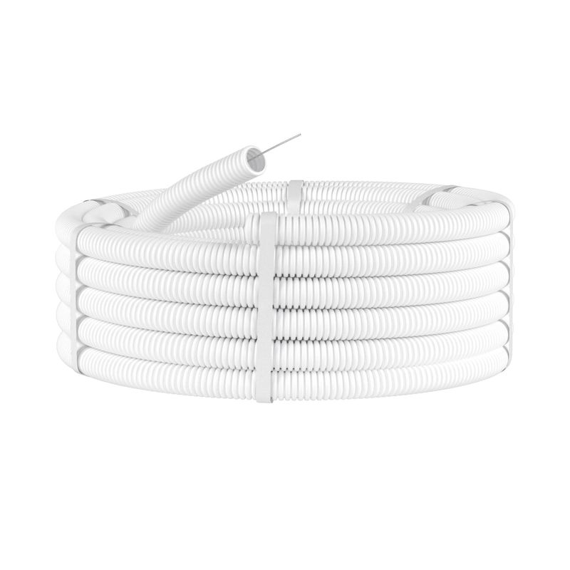 Белая труба DKC с номинальным диаметром 20 мм (внутренний — 14.8 мм, внешний — 19.7 мм) поставляется в удобной бухте по 100 метров. Это оптимальное сочетание безопасности, качества и удобства для профессиональных электромонтажных работ.