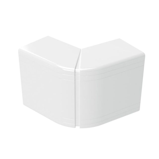 Угол изготовлен из высококачественного белого АБС-пластика, который отличается прочностью, долговечностью и устойчивостью к ультрафиолету. Симметричная конструкция и монтажная перфорация упрощают установку. Пластик не содержит галогенов, что повышает безопасность использования объекта. Способ монтажа верхней части (вставка внутрь) обеспечивает надежную фиксацию и защиту кабелей.
