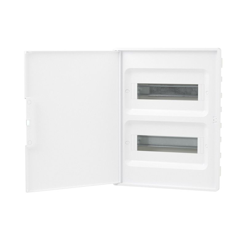 Встраиваемый щиток DKC FRAME на 24 модуля — это профессиональное решение для скрытого монтажа модульного электрооборудования в жилых и коммерческих помещениях. Его элегантный белый корпус и дверца гармонично впишутся в любой современный интерьер, обеспечивая при этом надежную защиту и удобный доступ к автоматике.